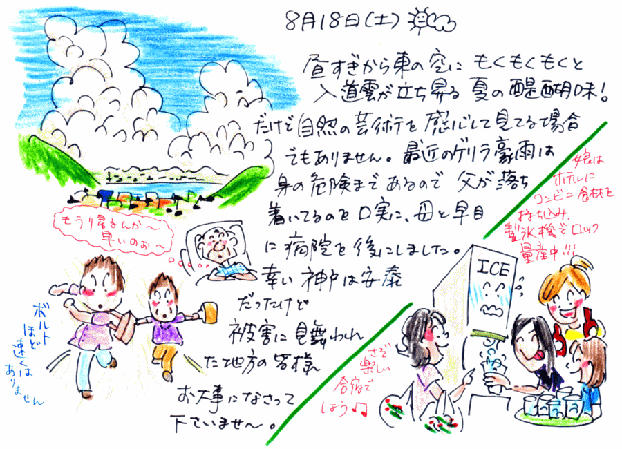 | 8月 2日(月) | 8月 3日(火) | 8月 4日(水) | 8月 5日(木) | 8月 6日(金) | 8月 7日(土) | 8月 8日(日) |