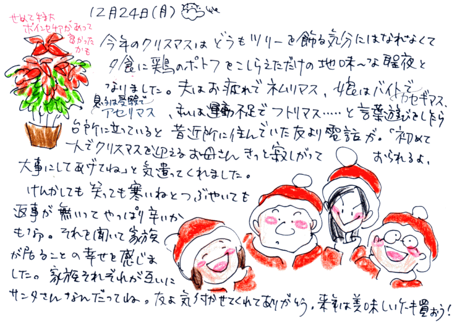 | 12月 20日(月) | 12月 21日(火) | 12月 22日(水) | 12月 23日(木) | 12月 24日(金) | 12月 25日(土) | 12月 26日(日) |